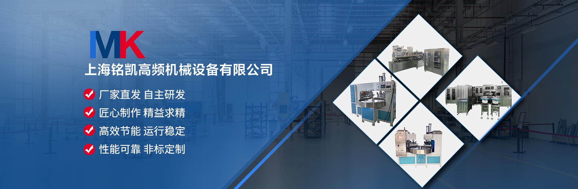 上海銘凱高頻機械設(shè)備有限公司是一家集研發(fā)、設(shè)計、制造、銷售及服務(wù)于一體的專業(yè)生產(chǎn)高頻···